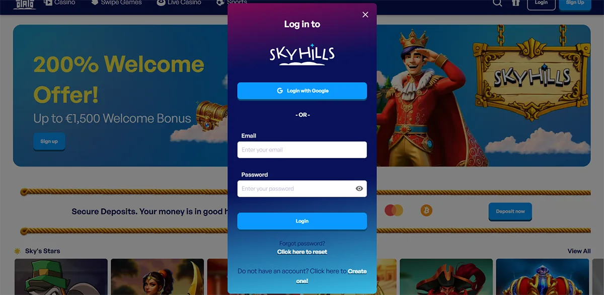 SkyHills Casino biedt spelers toegang tot een uitgebreid platform met duizenden gokspellen door middel van een modern en veilig inlogsysteem. Het casino ondersteunt verschillende inlogmethoden, waaronder traditionele e-mailautorisatie en snelle registratie via Google-account, waardoor gebruikers gemakkelijk toegang krijgen tot hun account. Het inlogproces bij SkyHills Casino is ontworpen met veiligheid en gebruiksgemak als prioriteit, met ondersteuning voor tweefactorauthenticatie en identiteitsvverificatie om accounts te beschermen. We behandelen de volledige registratieprocedure, van het aanmaken van een nieuw account tot het oplossen van veelvoorkomende inlogproblemen. Of je nu een nieuwe speler bent die zich wil aanmelden of een bestaande gebruiker die hulp nodig heeft bij het inloggen, we leiden je door alle stappen van het proces. We bespreken ook de beveiligingsmaatregelen, mobiele toegang en praktische tips om je SkyHills Casino ervaring zo soepel mogelijk te maken.